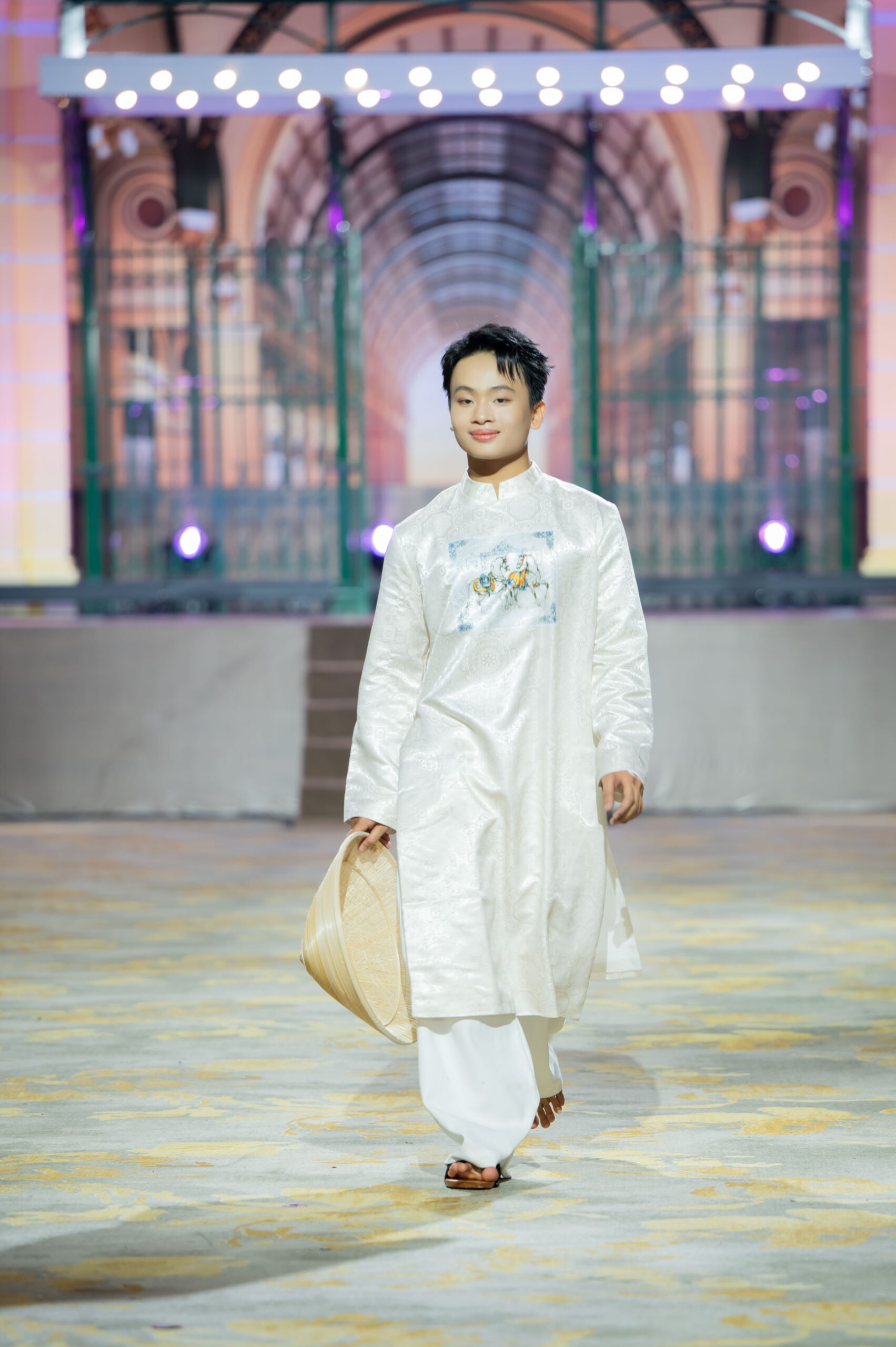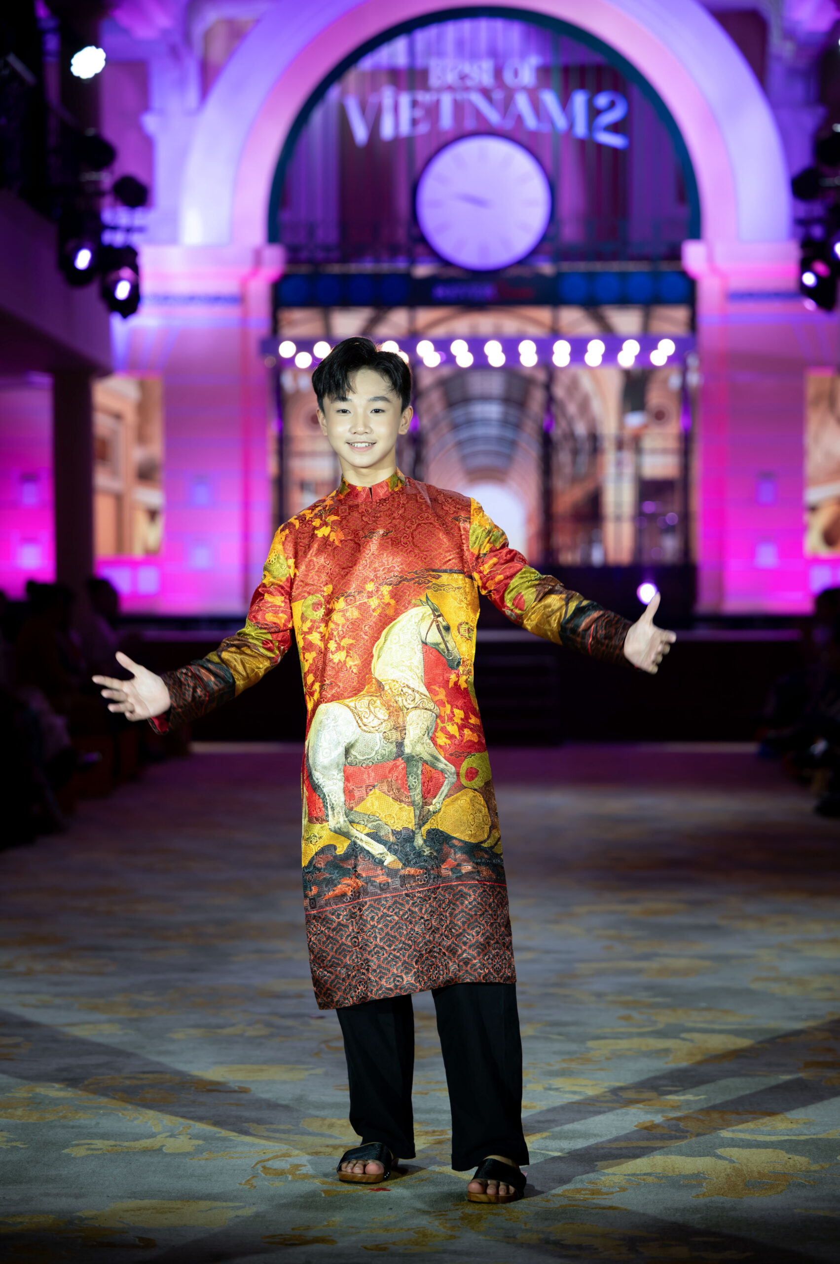 Trong khi đó, “Xuân Sang” của LOREN giới thiệu các mẫu áo dài bé trai, sử dụng tông màu ấm, đường cắt chỉn chu và tinh thần Á Đông hiện đại. Chương trình khép lại với sự xuất hiện của Vũ Bá Minh Đăng – Quán quân hạng mục “Dance” tại Cosmo Kid’s Star 2025. Sinh năm 2011, Minh Đăng được đánh giá cao về kỹ thuật vũ đạo, khả năng truyền tải cảm xúc và sự tự tin trên sân khấu. Trong mẫu áo dài LOREN, em thể hiện khí chất dứt khoát, tạo dấu ấn trọn vẹn cho màn kết. Ngoài nghệ thuật, Minh Đăng còn nổi bật trong học tập, yêu thích thể thao và tích cực tham gia các hoạt động phong trào.