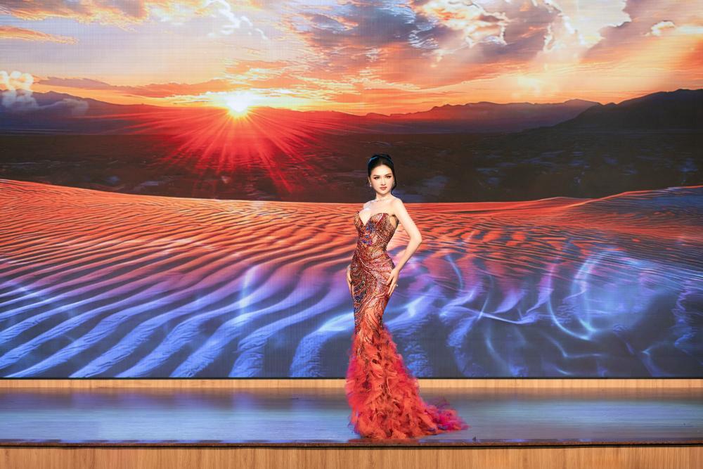 Đầm dạ hội chính thức của Á hậu Thu Ngân tại Miss Intercontinental