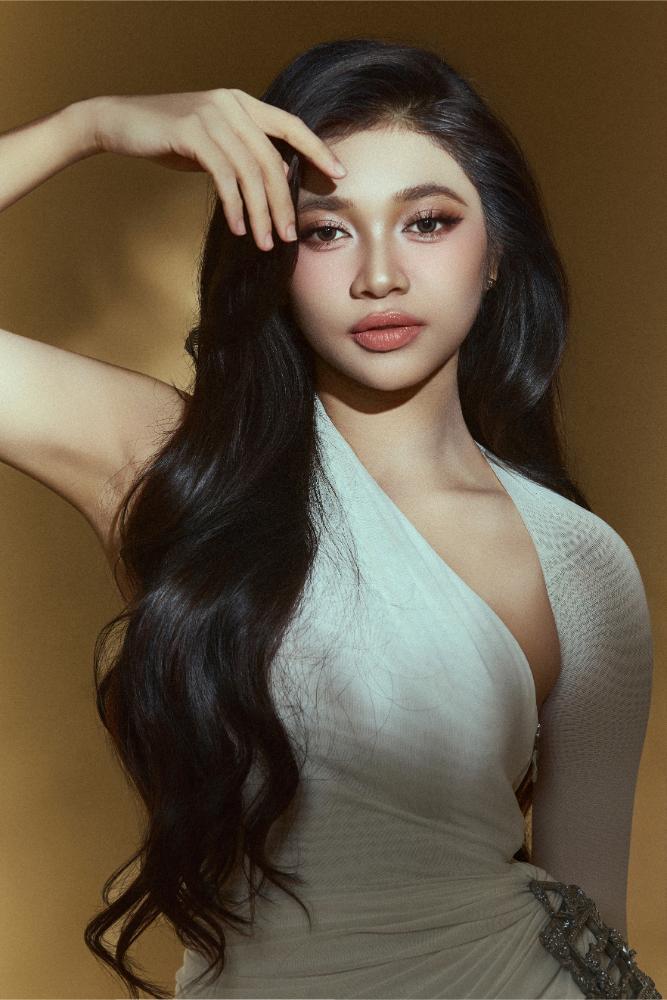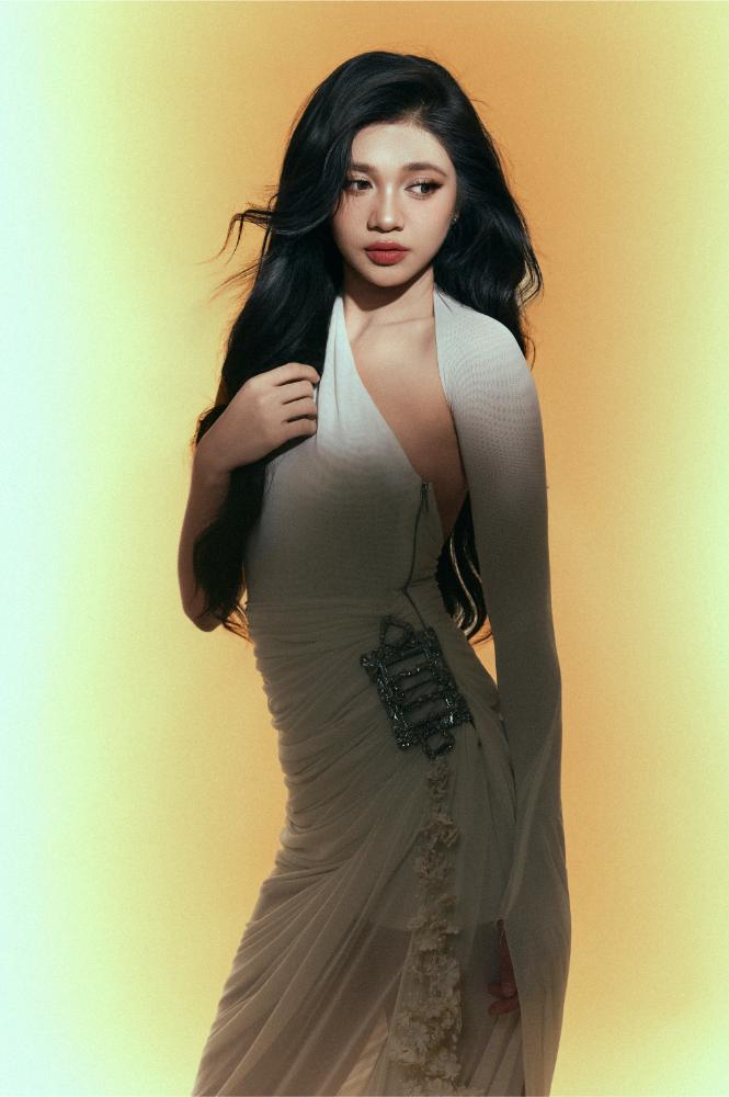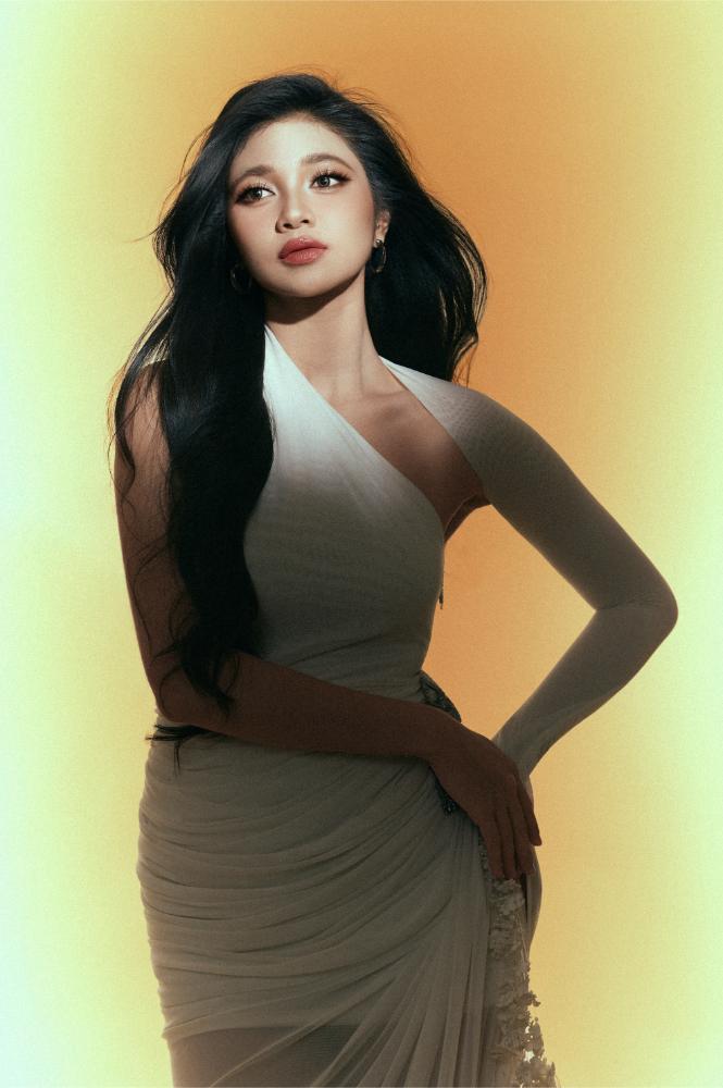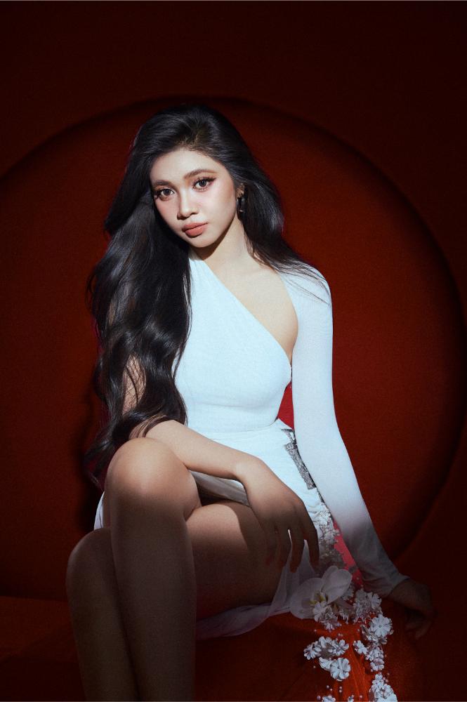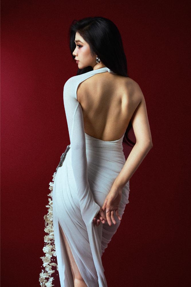 Trong bộ ảnh mừng tuổi mới, Minh Kiên lựa chọn bối cảnh tối giản để tập trung hoàn toàn vào nét đẹp và cảm xúc. Cô diện váy bó sát với thiết kế lệch vai tinh tế, Minh Kiên khoe trọn vòng eo thon gọn cùng bờ vai và xương quai xanh quyến rũ. Chất liệu mềm rủ kết hợp mái tóc xoăn bồng bềnh mang đến tổng thể vừa nữ tính, mềm mại.