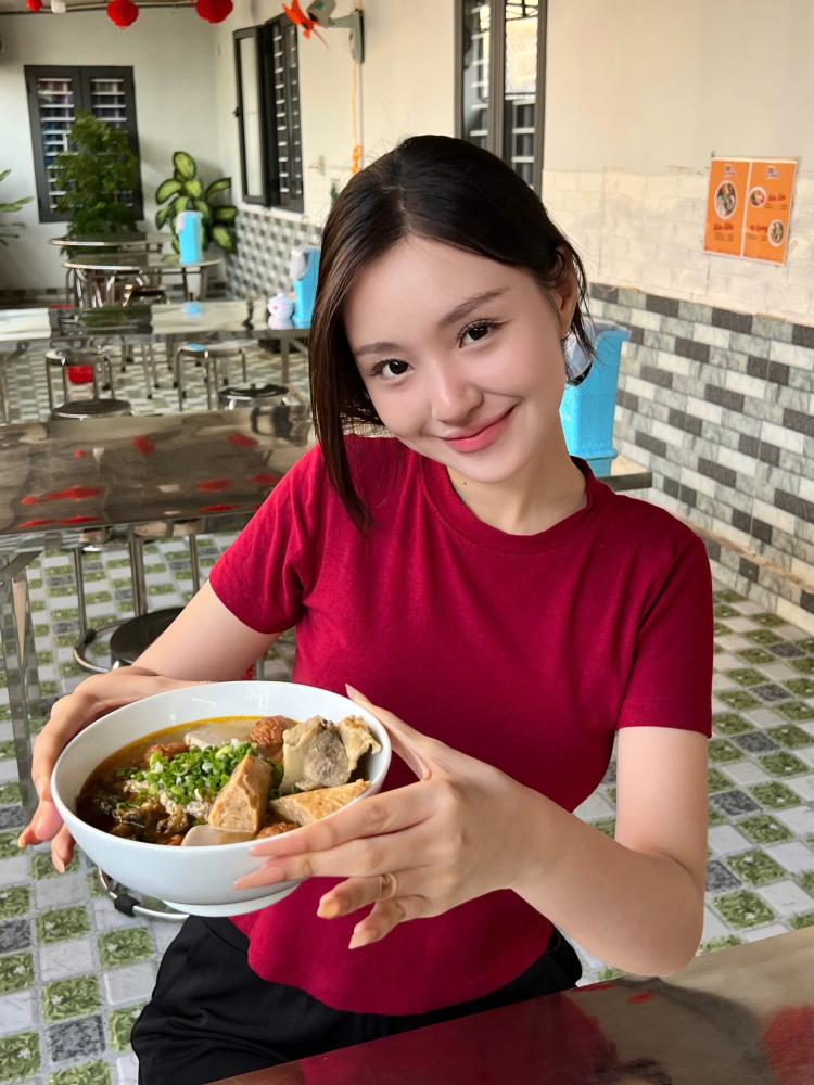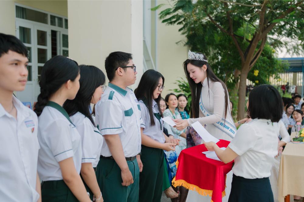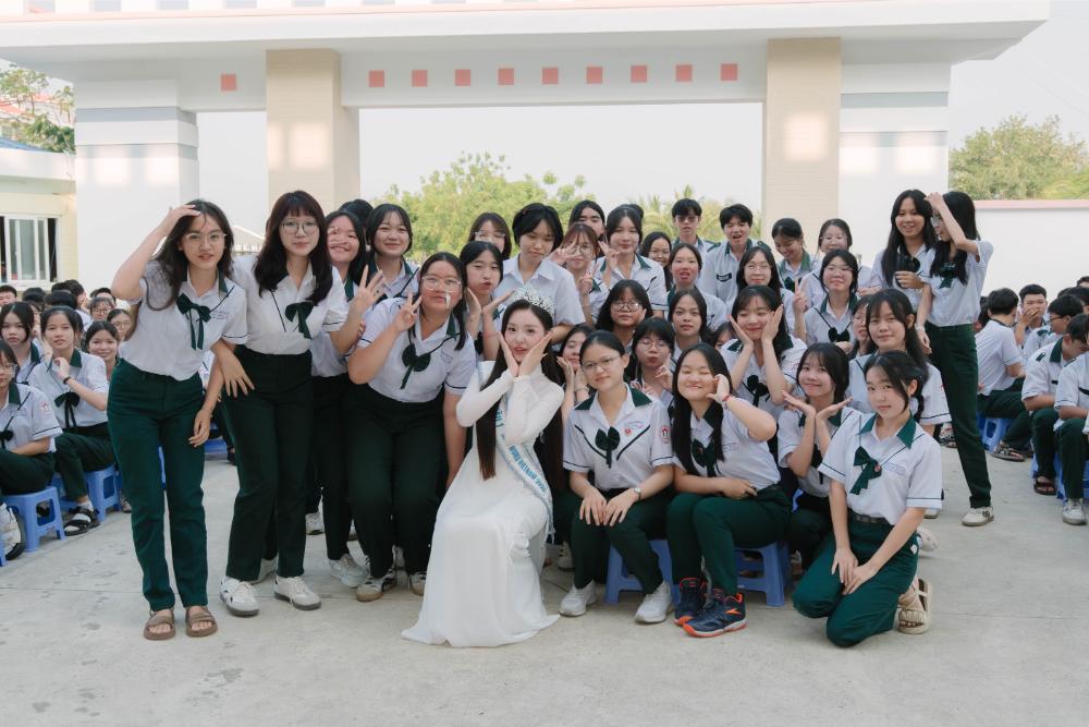 Á hậu Khánh Như về quê nấu bún riêu, trao học bổng tại trường cũ