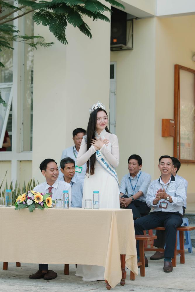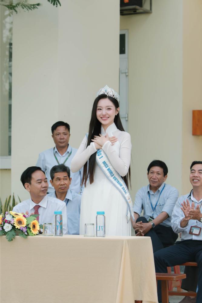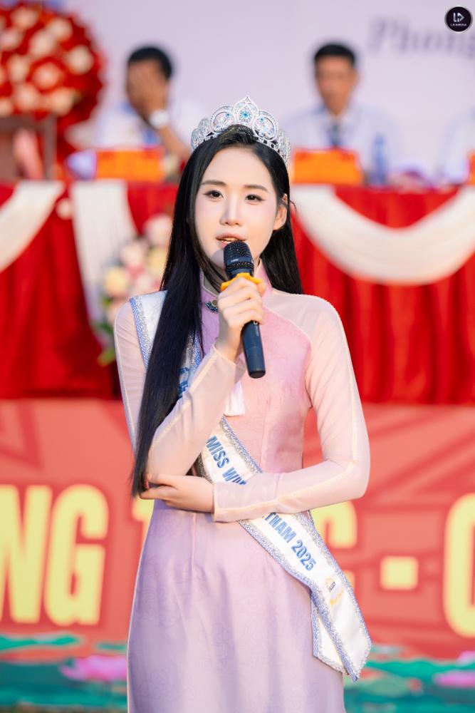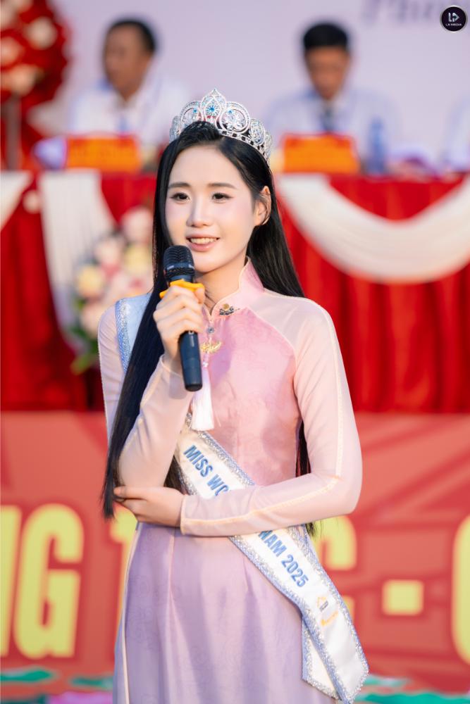 Trong bữa tiệc, Khánh Như gửi lời cảm ơn đến người thân, bà con hàng xóm đã luôn ủng hộ, cổ vũ cô trong suốt cuộc thi Miss World Vietnam 2025.