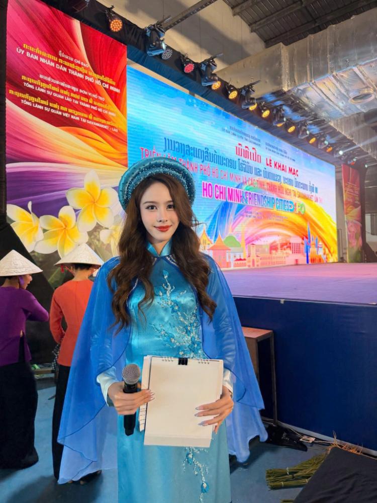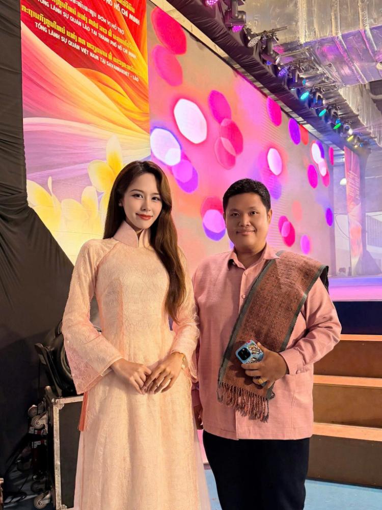 Không chỉ cầm trịch sự kiện, Hera Ngọc Hằng còn mang đến một tiết mục âm nhạc. Giữa không gian giao lưu văn hóa tại nước bạn Lào, cô trình diễn ca khúc “Việt Nam Trong Tôi Là” đầy tự hào và xúc động.