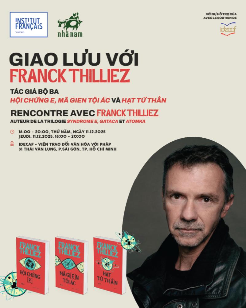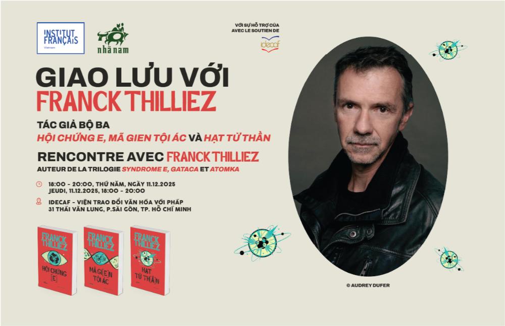 Tại TP. Hồ Chí Minh, vào lúc 18h00 – 20h00, ngày 11.12.2025, tại  IDECAF (Viện Trao đổi Văn hóa với Pháp) – 31 Thái Văn Lung, P. Sài Gòn, TP. HCM, Thilliez sẽ tham dự sự kiện: GIAO LƯU VỚI FRANCK THILLIEZ – TÁC GIẢ BỘ BA “HỘI CHỨNG E”, “MÃ GIEN TỘI ÁC” VÀ “HẠT TỬ THẦN”.