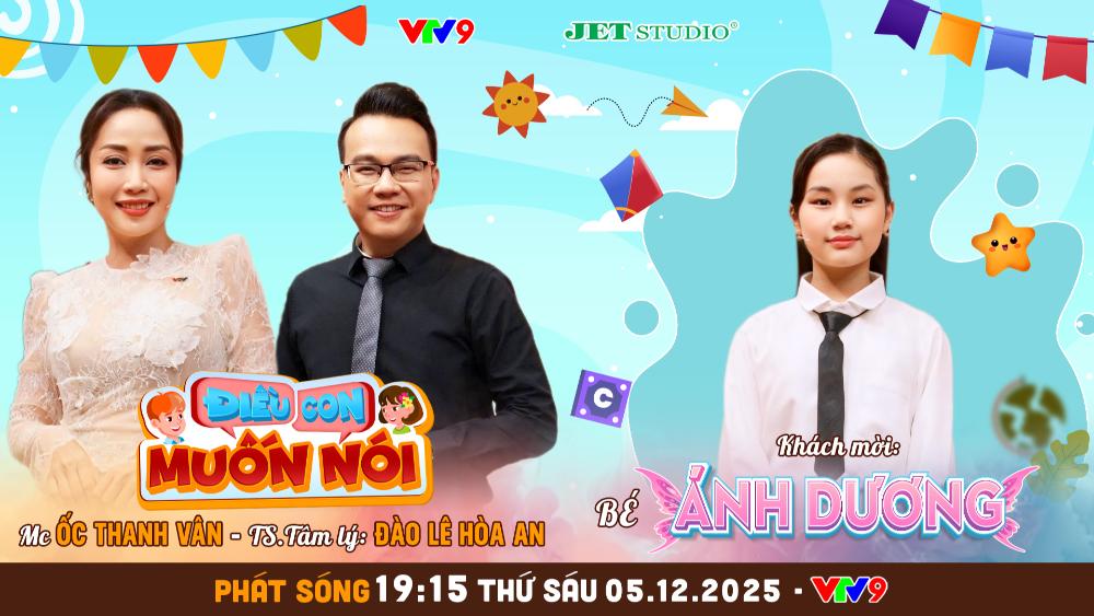 Điều Con Muốn Nói tập 22 với những tâm sự của bé Ánh Dương sẽ được phát sóng vào lúc 19h15 thứ Sáu 5/12/2025 trên VTV9. Chương trình Điều Con Muốn Nói do VTV9 phối hợp Jet Studio thực hiện.