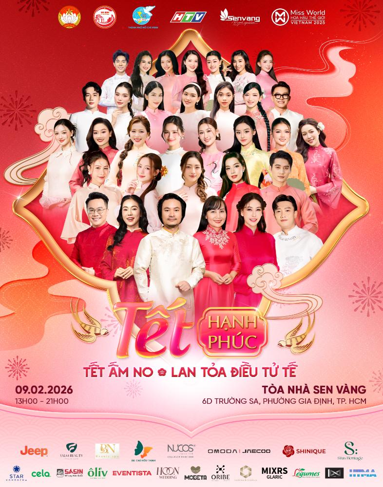 Trong không khí rộn ràng của mùa xuân Bính Ngọ 2026, hành trình nhân ái ấy tiếp tục được nối dài với “Tết Hạnh Phúc” mùa 4, mang chủ đề “Tết Ấm No – Lan Tỏa Điều Tử Tế”. Chương trình năm nay nằm trong khuôn khổ cuộc thi Miss World Vietnam 2025, do công ty Sen Vàng phối hợp cùng Hội Liên hiệp Phụ nữ TP.HCM, Đài Phát thanh và Truyền hình TP. HCM (HTV), Ủy ban Mặt trận Tổ quốc và Ủy ban Nhân dân phường Gia Định tổ chức thực hiện.