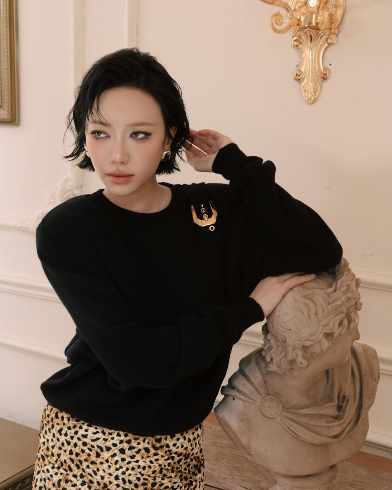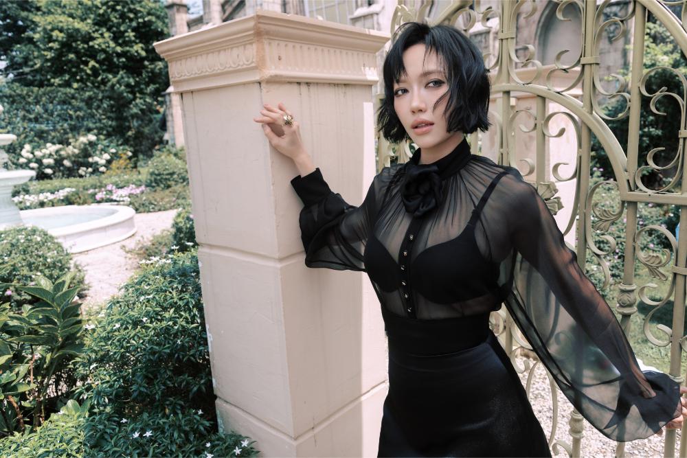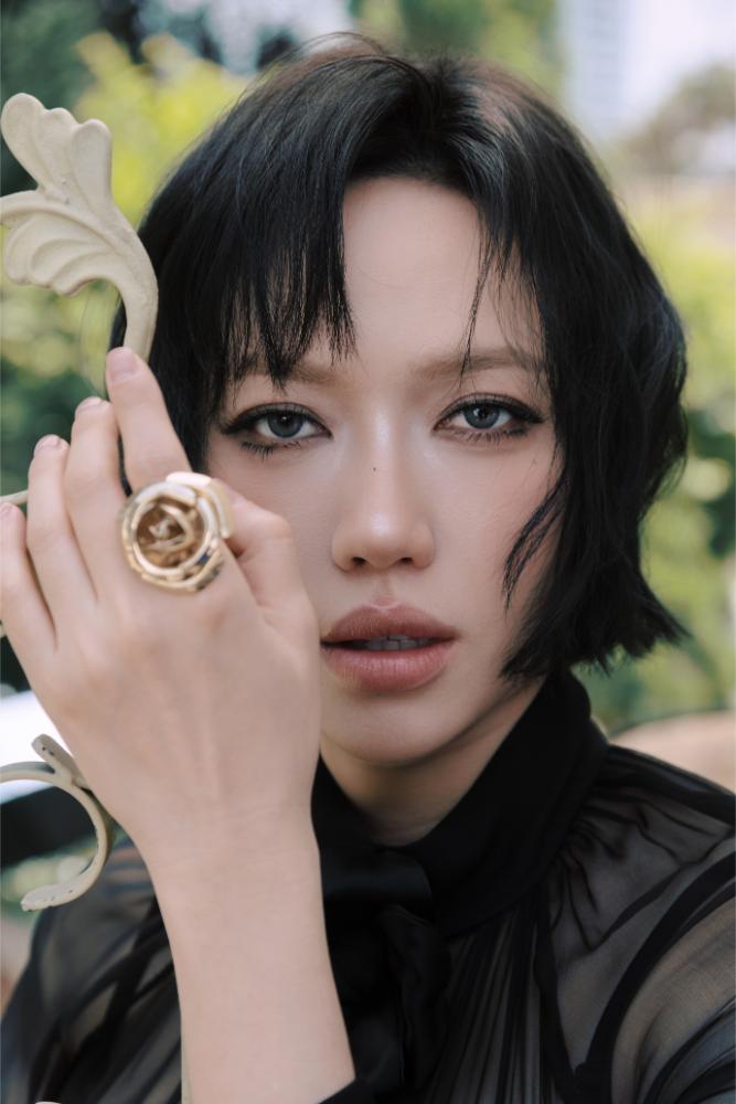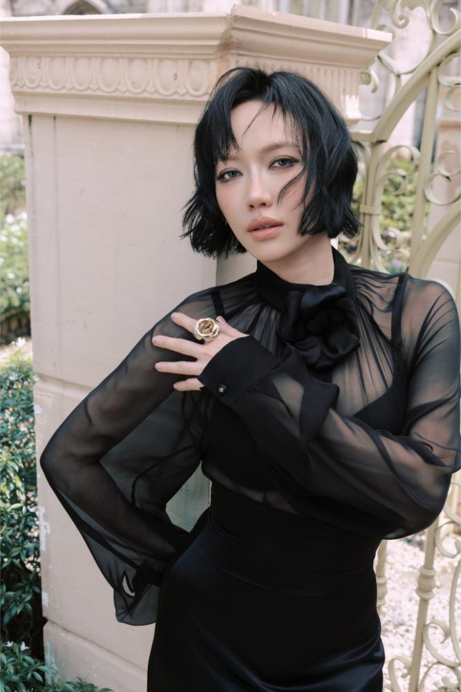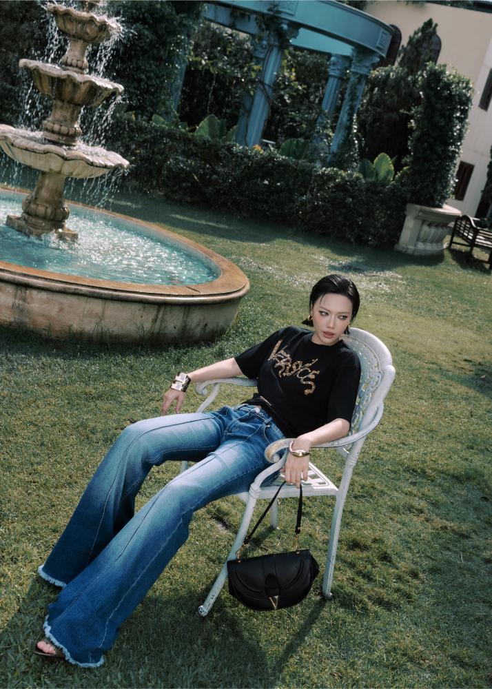 Ngoài ra sắc đen được diễn viên lựa chọn xuyên suốt bộ ảnh. Tuy nhiên các kết hợp đa dạng khi phối lưới, khi kết hợp da beo, lúc lại phối jeans khiến Diệu Nhi trở nên thú vị hơn hẳn. Tạm gác lại hình ảnh năng động cá tính, Diệu Nhi thời điểm hiện tại hướng mình đến sự trưởng thành, thanh lịch, tinh tế.