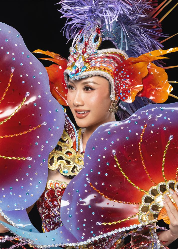 Lấy cảm hứng từ hình tượng “Cá Chép Hóa Rồng”, biểu tượng văn hóa gắn liền với tinh thần bền bỉ và khát vọng vươn mình của người Việt, thiết kế Carnival Costume “The Rising Dragon” được phát triển với bảng màu rực rỡ, giàu chất lễ hội, hướng tới hình ảnh diễu hành đường phố đầy năng lượng. Tư duy này hòa nhịp với chủ đề “Rising Dragon” của Miss Cosmo 2025, thời điểm Việt Nam tự tin khẳng định vị thế trong kỷ nguyên mới.
