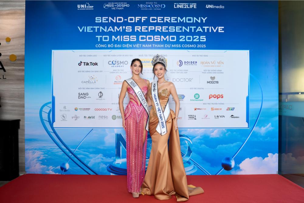 Sự kiện công bố đại diện Việt Nam tham gia Miss Cosmo 2025 do Công ty Hoàn Vũ Sài Gòn (Unicorp) – đơn vị nắm giữ bản quyền và đề cử đại diện Việt Nam phối hợp cùng Công ty TNHH UniMedia Vietnam (UniMedia) – đơn vị quản lý, huấn luyện và sản xuất, tổ chức. Buổi Send-off có sự hiện diện của các đại biểu: Ông Trần Việt Bảo Hoàng – Trưởng ban tổ chức, CEO Miss Cosmo; Hoa hậu Nguyễn Thị Ngọc Châu – Giám đốc Quốc gia Miss Cosmo Vietnam; Bùi Xuân Hạnh – Hoa Hậu Hoàn Vũ Việt Nam 2023, Top 5 Miss Cosmo 2024 và Nguyễn Hoàng Phương Linh – Đương kim Hoa Hậu Hoàn Vũ Việt Nam.