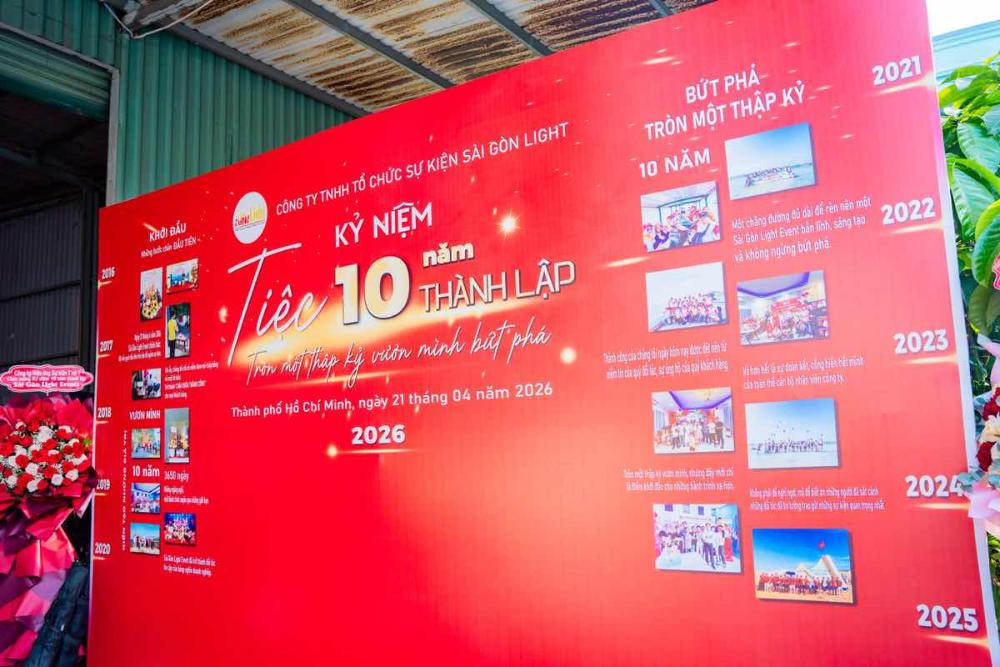 Cột mốc 10 năm thành lập không chỉ là một con số kỷ niệm, mà còn là lời khẳng định vị thế của Sài Gòn Light Event trong ngành sự kiện tại Việt Nam. Với chiến lược “lấy hạ tầng làm gốc”, Sài Gòn Light Event đã vươn mình trở thành một trong những đơn vị sở hữu năng lực thực thi và hệ thống thiết bị hàng đầu hiện nay.