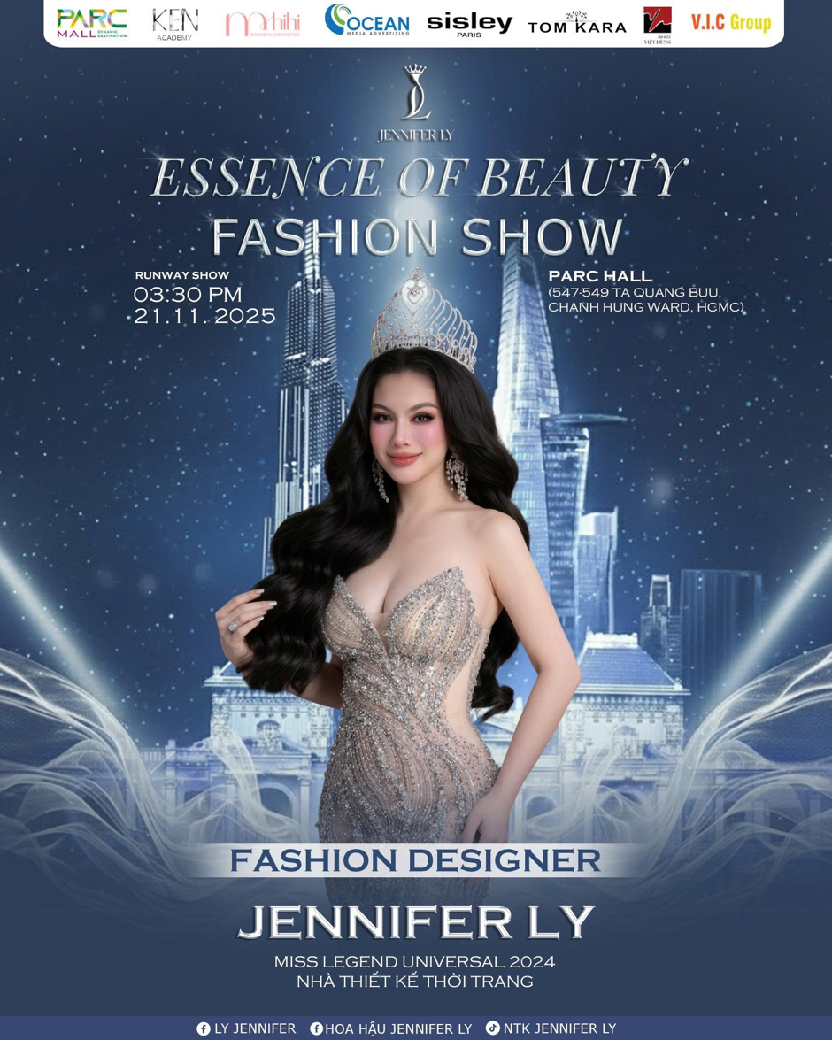 TP.HCM – Nhà thiết kế (NTK) Jennifer Ly sẽ chính thức ra mắt bộ sưu tập (BST) mới của mình tại Fashion Show “Essence of Beauty,” diễn ra vào ngày 21/11/2025 tại Parc Mall, TP.HCM. Sự kiện này đánh dấu sự trở lại của NTK sau thành công của BST “Gold in The Sand” hồi giữa năm.