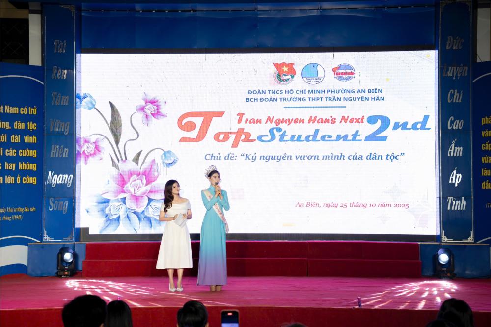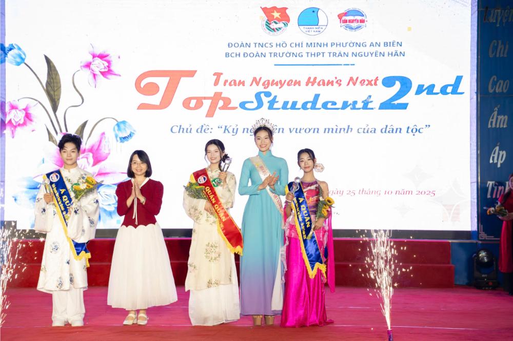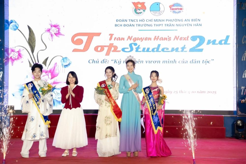 Kết quả chung cuộc, Trần Ngọc Bảo Trang (lớp 10C14) đã xuất sắc đăng quang Quán quân “Trần Nguyên Hãn’s Next Top Student 2025”, chinh phục ban giám khảo bởi phong thái tự tin, khả năng biểu đạt mạch lạc và phong cách trình diễn duyên dáng.
