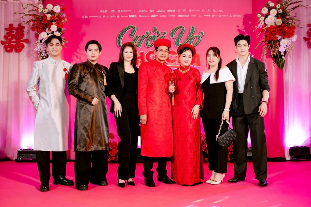Hoa hậu Hoàng Thanh Nga rạng rỡ tại buổi ra mắt phim “Cưới Vợ Cho Cha” – Nhà đầu tư tâm huyết xuất hiện hạnh phúc bên ông xã trong tà áo dài đỏ mang âm hưởng đám cưới miền Tây.