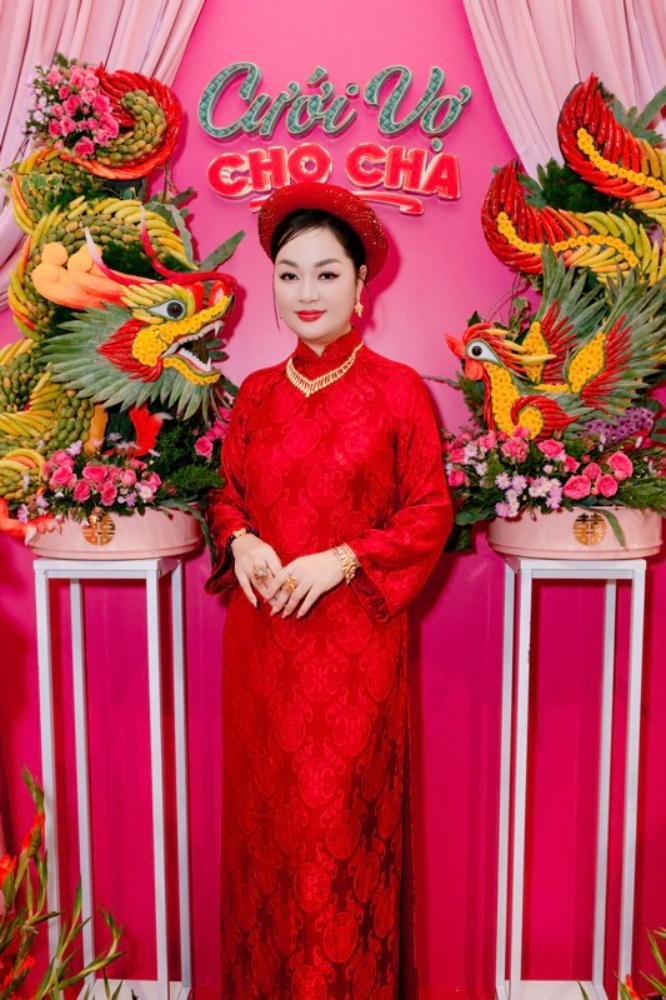 Tại buổi công chiếu bộ phim “Cưới Vợ Cho Cha”, Hoa hậu Hoàng Thanh Nga thu hút mọi ánh nhìn khi xuất hiện đầy nổi bật trong tà áo dài đỏ rực, kết hợp trang sức vàng sang trọng – hình ảnh mang đậm âm hưởng đám cưới miền Tây, biểu tượng cho may mắn, hạnh phúc và sự viên mãn.