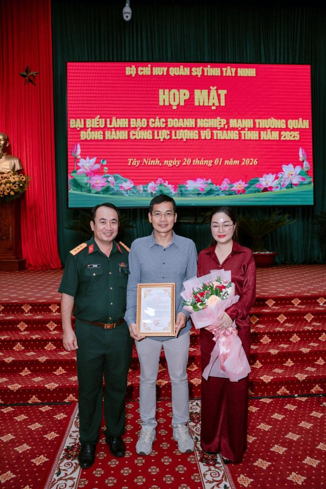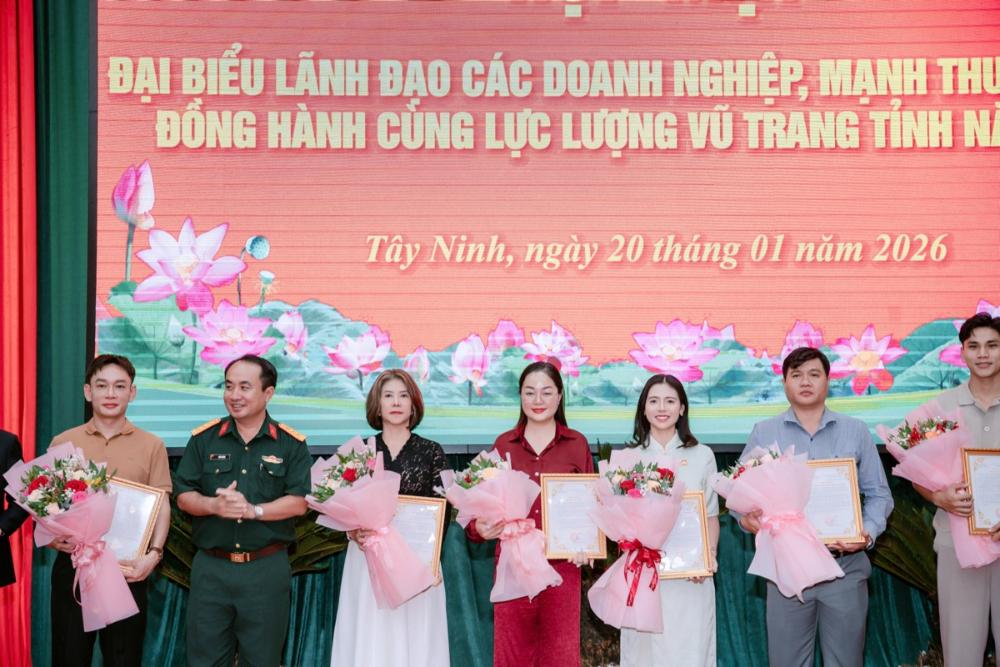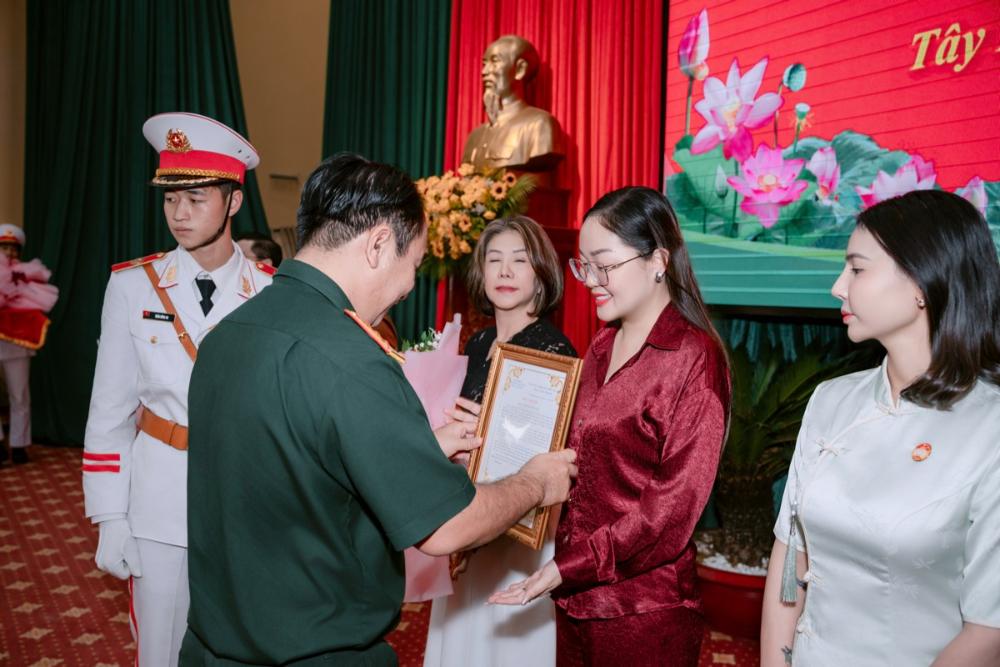 Xuất hiện tại sự kiện với hình ảnh thanh lịch, nền nã nhưng toát lên thần thái tự tin và bản lĩnh, Hoa hậu Hoàng Thanh Nga ghi điểm bởi phong cách gần gũi, chân thành. Khoảnh khắc đón nhận Bằng khen từ đại diện Bộ Chỉ huy Quân sự tỉnh Tây Ninh là minh chứng cho sự trân trọng của các cấp lãnh đạo đối với những nỗ lực bền bỉ mà cô đã âm thầm đóng góp.
