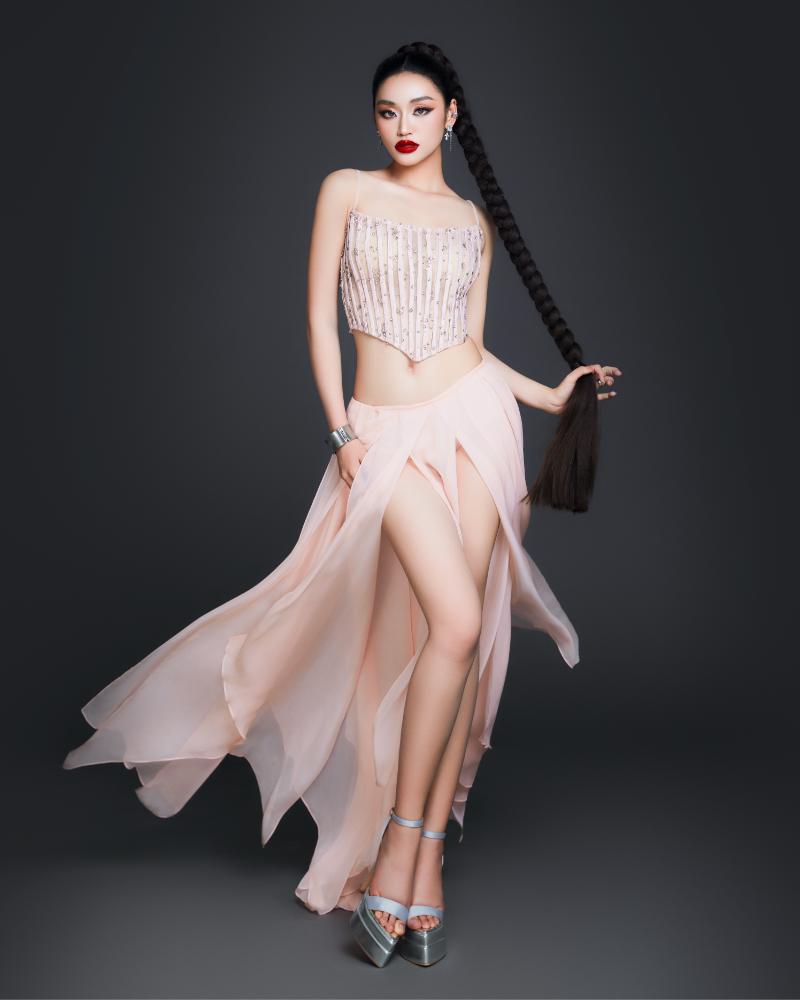 Đại diện Việt Nam chọn kiểu tóc đuôi ngựa buộc cao, dài và bồng bềnh, tôn nét cá tính và năng động. Ngay khi xuất hiện, Yến Nhi đã toát lên năng lượng mạnh mẽ cùng phong thái rạng rỡ, tự tin.