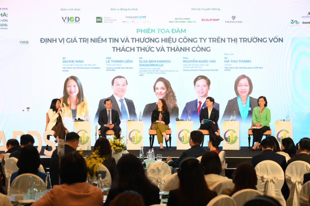 Phiên tọa đàm “Định vị giá trị niềm tin và thương hiệu công ty trên thị trường vốn – Thách thức và thành công” tập trung vào câu hỏi trọng yếu: Trong bối cảnh thị trường bước vào giai đoạn phát triển mới, HĐQT cần đổi mới tư duy và hành động như thế nào để bứt phá, củng cố niềm tin và nâng tầm thương hiệu doanh nghiệp trong 5 năm tới? Phiên tọa đàm có phần chia sẻ từ đại diện CTCP Sữa Việt Nam (Vinamilk) – một trong những doanh nghiệp niêm yết có quy mô và mức độ ảnh hưởng hàng đầu tại Việt Nam, đại diện CTCP Chứng khoán SSI – một trong những công ty chứng khoán tiên phong và có vai trò quan trọng trên thị trường vốn Việt Nam, đại diện lãnh đạo Viện Thành viên HĐQT Malaysia (ICDM), và Trưởng nhóm Chuyên gia Giải pháp Phát triển Bền vững & Khí hậu khu vực Châu Á – Thái Bình Dương (APAC) của MSCI – tổ chức hàng đầu thế giới trong lĩnh vực chỉ số, phân tích rủi ro và xếp hạng ESG.