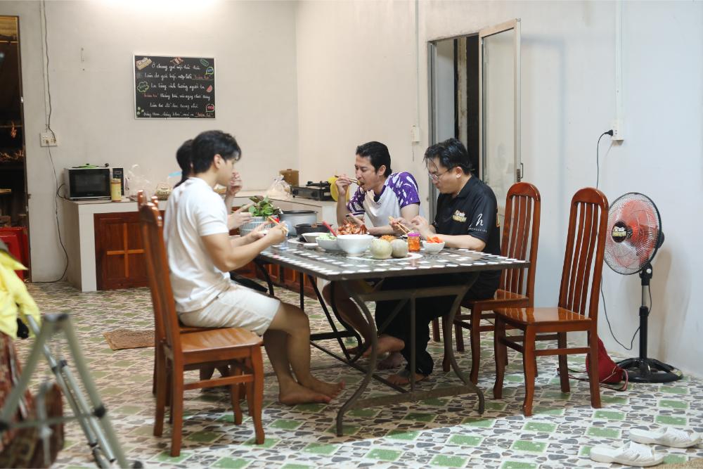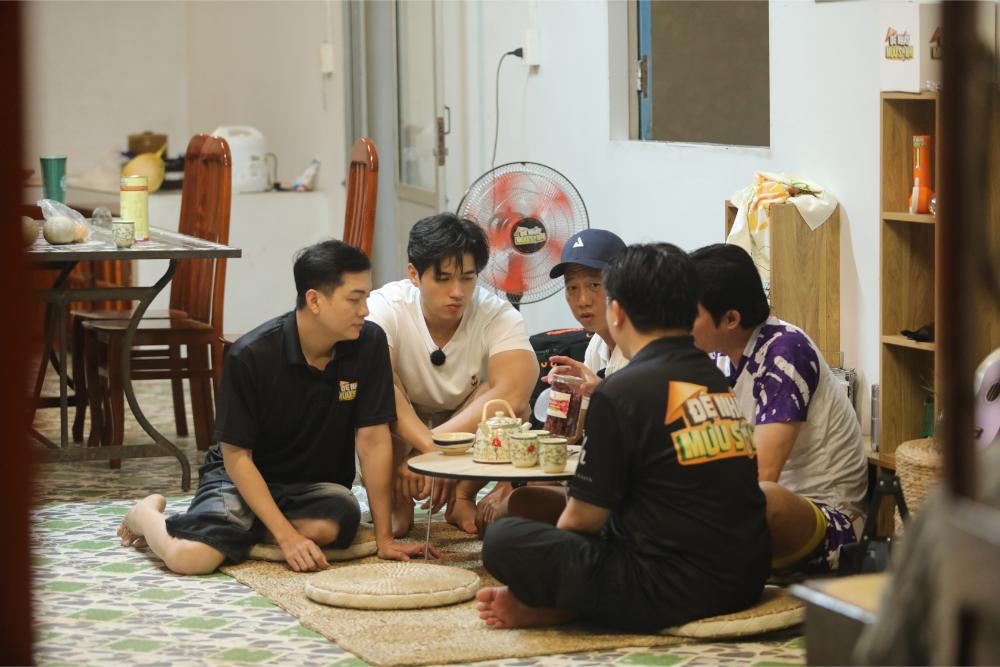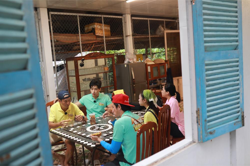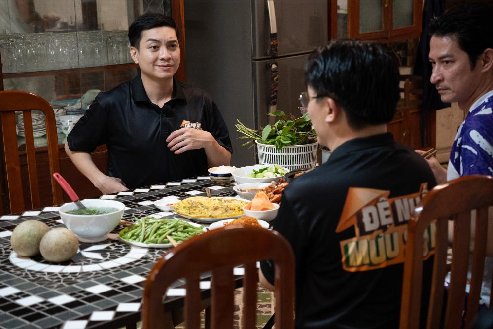 Buổi tối, giữa cơn mưa rả rích, “anh hai Tấm” Đại Nghĩa nhóm bếp củi, nấu nướng cho cả nhà. Gian bếp quê thơm mùi khói, tiếng cười chen lẫn mùi thức ăn tạo nên bức tranh gia đình ấm áp. Thế nhưng, cảm xúc yên bình nhanh chóng bị cắt ngang bởi một “đặc sản” của Đệ Nhất Mưu Sinh: đòi nợ.