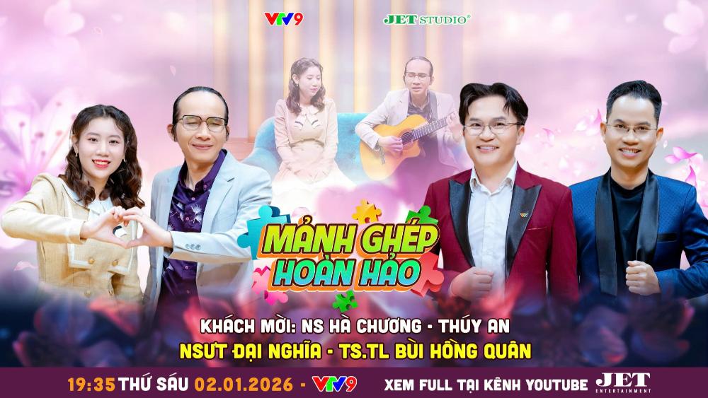 Mảnh Ghép Hoàn Hảo với câu chuyện của đôi vợ chồng NS Hà Chương – Thúy An sẽ phát sóng lúc 19:35, thứ Sáu ngày 02/01/2026 trên kênh VTV9. Chương trình do VTV9 phối hợp cùng Jet Studio thực hiện.