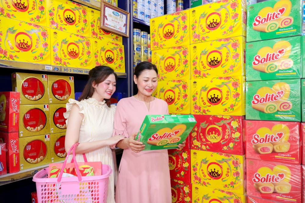 - Lộc Thịnh Vượng: Mang thông điệp “An Khang – Thịnh Vượng”, kết hợp các sản phẩm quen thuộc cùng điểm nhấn là bánh quy LU Choco Lava và bánh bông lan Solite vị Xoài – hương vị mới ra mắt độc quyền cho mùa Tết 2026.