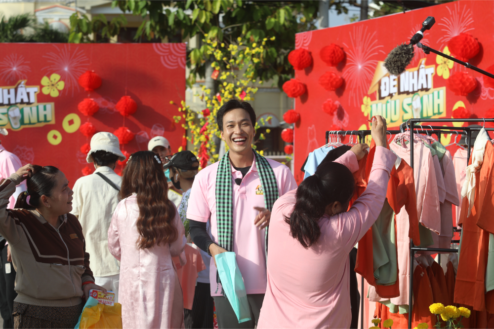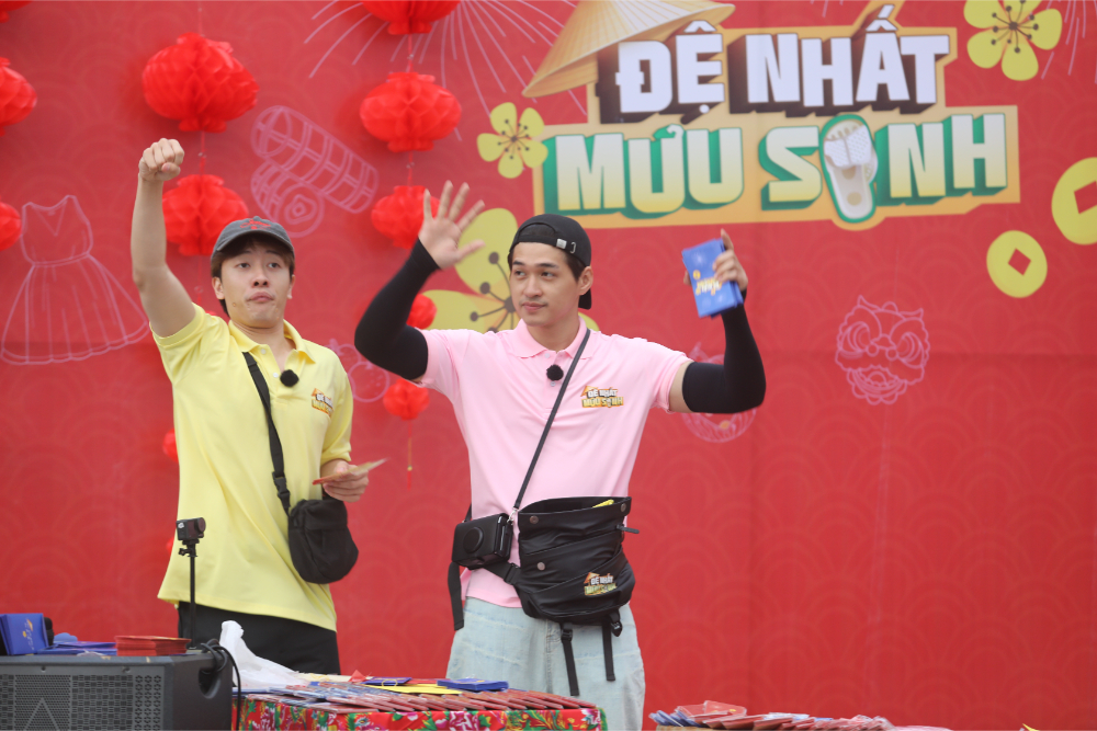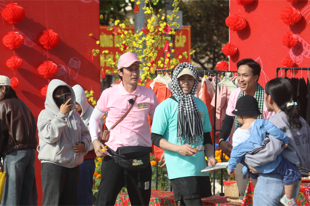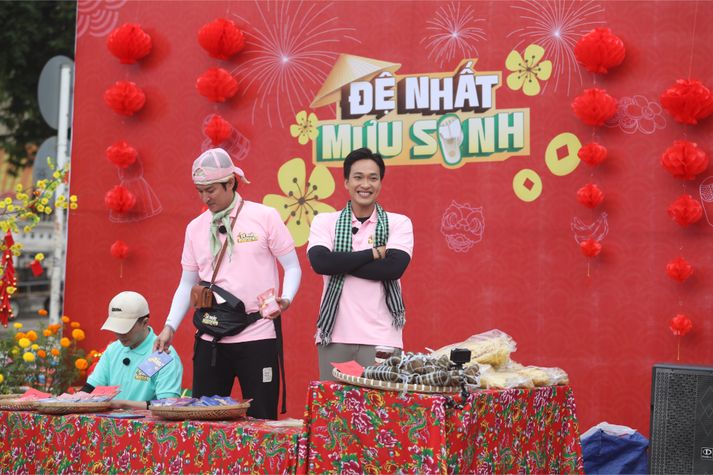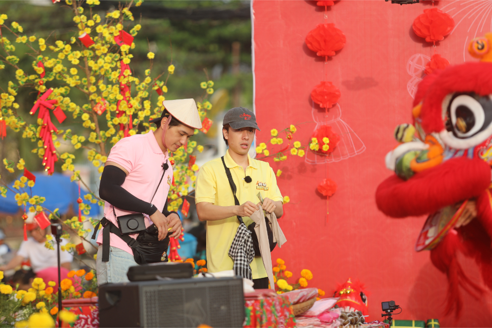 Ở phía Ma Ran Đô, lợi thế ban đầu đến từ sức hút cá nhân, nhưng bước ngoặt rõ rệt nhất là khi người anh Kim Tử Long quay lại hỗ trợ mà không hề báo trước. Anh nhanh chóng biến gian hàng thành tâm điểm. Bằng sự hoạt ngôn, anh vừa rao hàng, vừa trò chuyện, vừa hát góp vui khiến không khí hội xuân vì thế sôi động hơn hẳn. Điều này cũng giúp gian hàng của Ma Ran Đô chiếm nhiều lợi thế hơn trong giai đoạn đầu tiên. Bên kia, Huy Khánh và Will chọn cách chủ động đi sâu vào chợ, mời chào trực tiếp và may mắn được bà con “chốt đơn” liên tục. Những chi tiết nhỏ như việc Huy Khánh ghé tiệm vàng của ân nhân, hay đoàn lân của má Bảy xuất hiện góp vui, còn mua ủng hộ và lì xì anh thêm 50 nghìn đồng, tạo nên mạch nối xuyên suốt từ tập 1 đến tập cuối. Dù chỉ gặp nhau trong một buổi ngắn ngủi, bà con nơi đây vẫn dành cho dàn cast sự quan tâm, ủng hộ hết như đã thân thiết từ lâu.