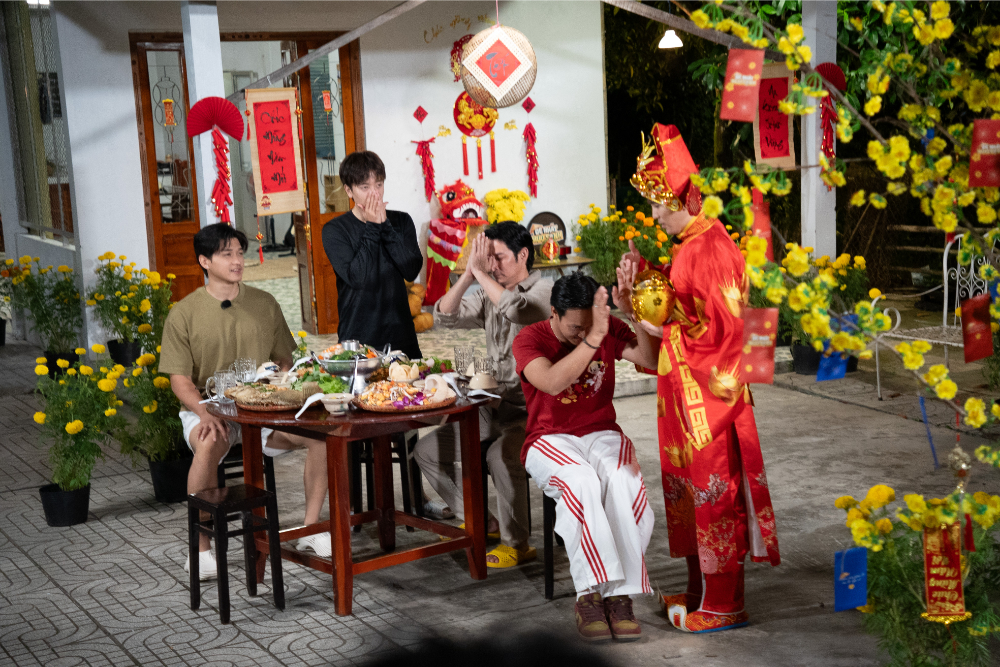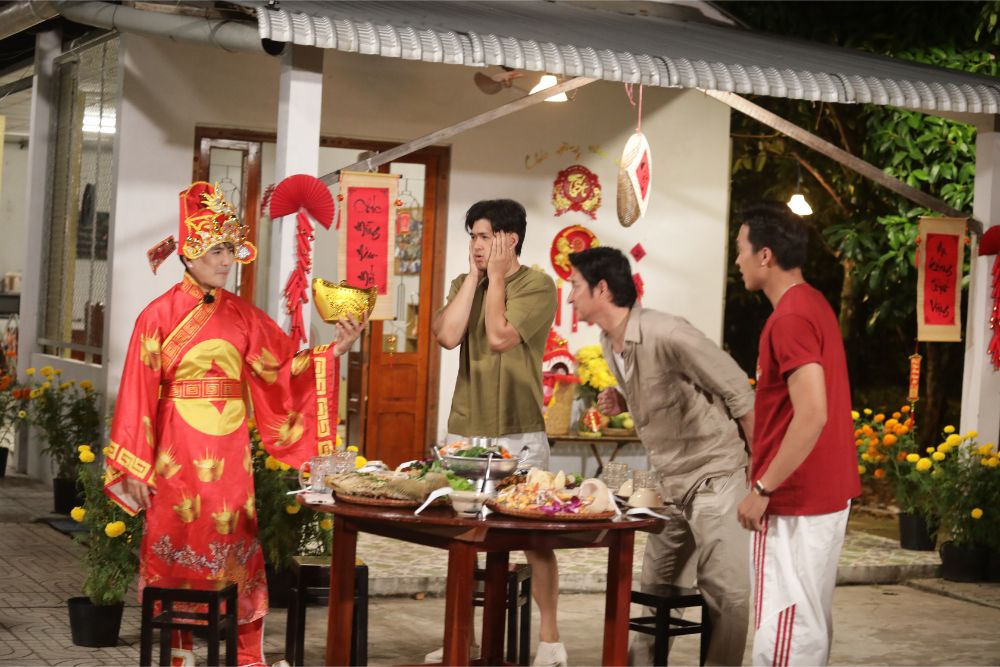 Trò chơi sôi nổi qua đi, chương trình cũng dần đến hồi kết. Huy Khánh hô hào các em cùng dọn dẹp, trang trí nhà chung để chuẩn bị cho bữa cơm Tết sum vầy. Khung cảnh mỗi người đều tất bật, luôn tay luôn chân khiến khán giả cảm nhận không khí Tết càng thêm đậm đà. Đến giờ ăn, Will xuất hiện như một “secret” với bộ đồ thần tài rực rỡ. Anh giật mình khi thấy mọi người đều ăn mặc bình thường, còn bản thân áp dụng triệt để lời biên tập dặn ăn mặc đặc biệt cho tiết mục cuối này. Cảm thấy mình quá lố, Will quyết định vào thay đồ và trở lại với bộ áo dài cũng…không mấy giản dị. Tình huống bất ngờ khiến dàn cast náo động và tiếp tục mang đến những tiếng cười thoải mái cho khán giả. Bữa cơm Tết là phần lắng lại rõ rệt nhất của tập cuối. Mâm cơm miền Tây với lẩu cù lao, cá tai tượng chiên xù, thịt nướng kim tiền, tôm càng… khiến người miền Bắc như Nicky thích thú trong khi người con miền Tây như Lâm Thanh Nhã lại thấy như được về nhà.