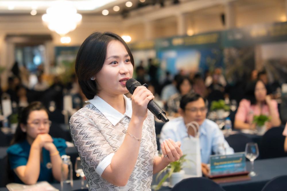 Bà Nguyễn Thị Hoà – Giám đốc Marketing Công ty cổ phần Vinpearl chia sẻ tham luận Giới thiệu sản phẩm du lịch mới để Cần Giờ bứt phá – Ảnh QUANG ĐỊNH