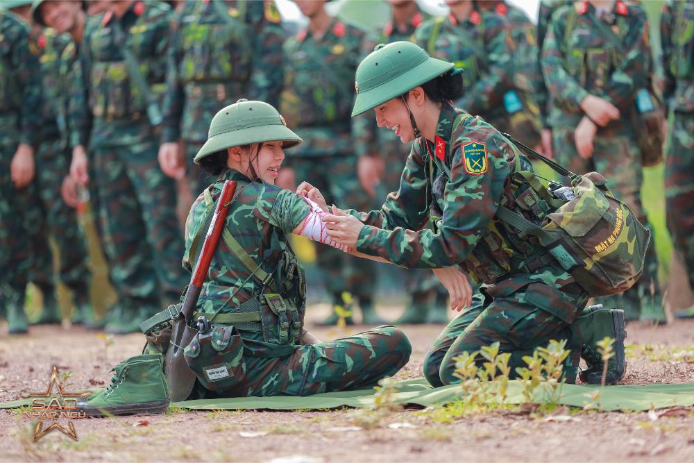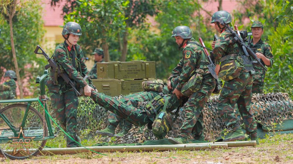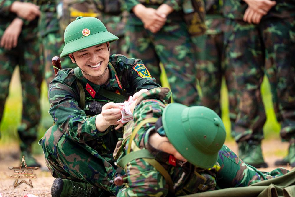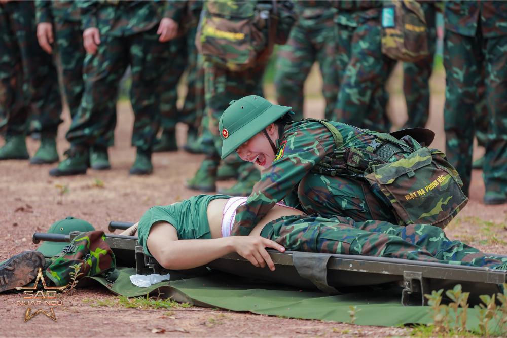 Không khí thao trường vừa nghiêm túc vừa rộn ràng tiếng cười. Anh Tú nhập vai thương binh diễn sâu đến mức giả ngất, khiến quân y Huỳnh Lập suýt làm hô hấp nhân tạo. Diệp Lâm Anh thì chú trọng hình thức đến mức… thắt nơ cho thương binh Trang Pháp. Chi Pu và Tim cũng là cặp đôi khiến cả thao trường “náo loạn”. Khi được giao sơ cứu cho “thương binh Tim bị rắn cắn”, Chi Pu hỏi thẳng: “Có cần cởi không?” khiến mọi người ngỡ ngàng. Trong lúc Tim “than mất cảm giác tay trái”, Chi Pu vẫn điềm tĩnh trấn an và kết thúc bằng lời khẳng định: “Đồng chí sẽ ổn thôi, tin tôi đi!”