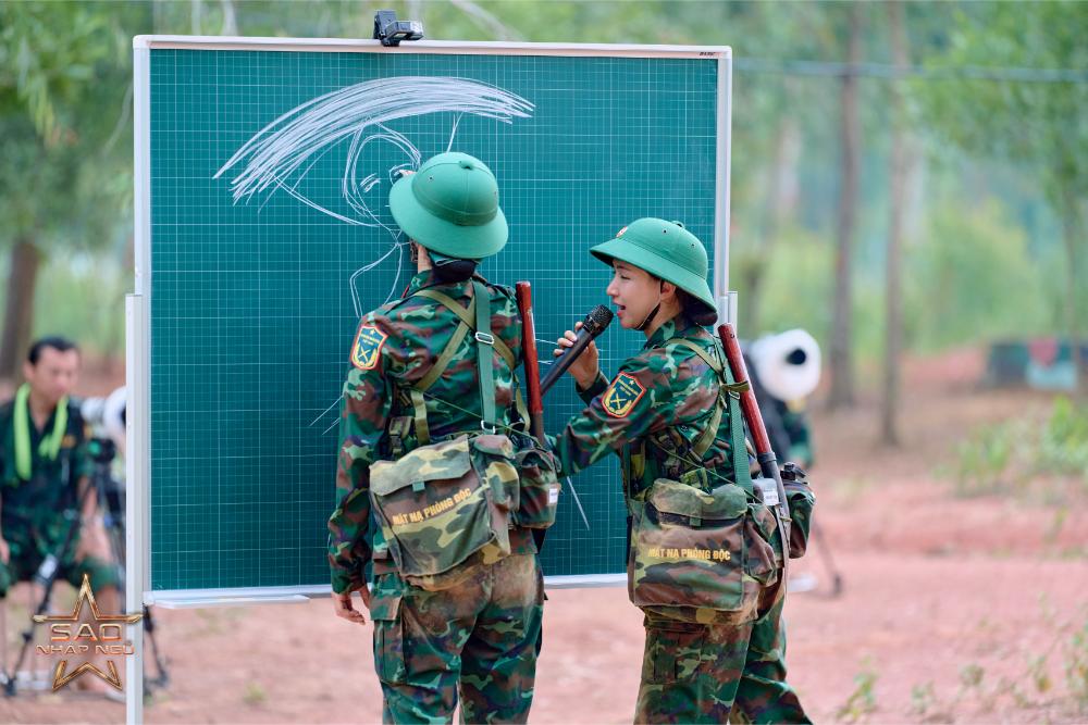 Đến phần thị phạm tiếp theo, Diệu Nhi và Hậu Hoàng hoảng loạn khi bị đặt vào tình huống mô phỏng tiếng súng và khói lửa, phải sơ cứu cho các chiến sĩ được hóa trang vết thương vô cùng chân thật, khiến đồng đội chứng kiến cũng phải nổi da gà.