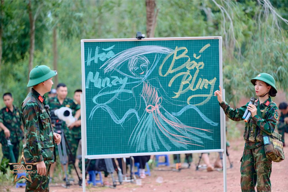 Sau giờ huấn luyện căng thẳng, không khí doanh trại trở nên nhẹ nhàng hơn với phần giải lao đặc biệt. Hòa Minzy và Anh Tú mang đến tiết mục “Bắc Bling” đầy năng lượng. Song song, một đồng chí chiến sĩ cũ và Diệp Lâm Anh cùng trổ tài hội họa, vẽ lại cảm nhận về bài hát nổi tiếng của Hòa Minzy.