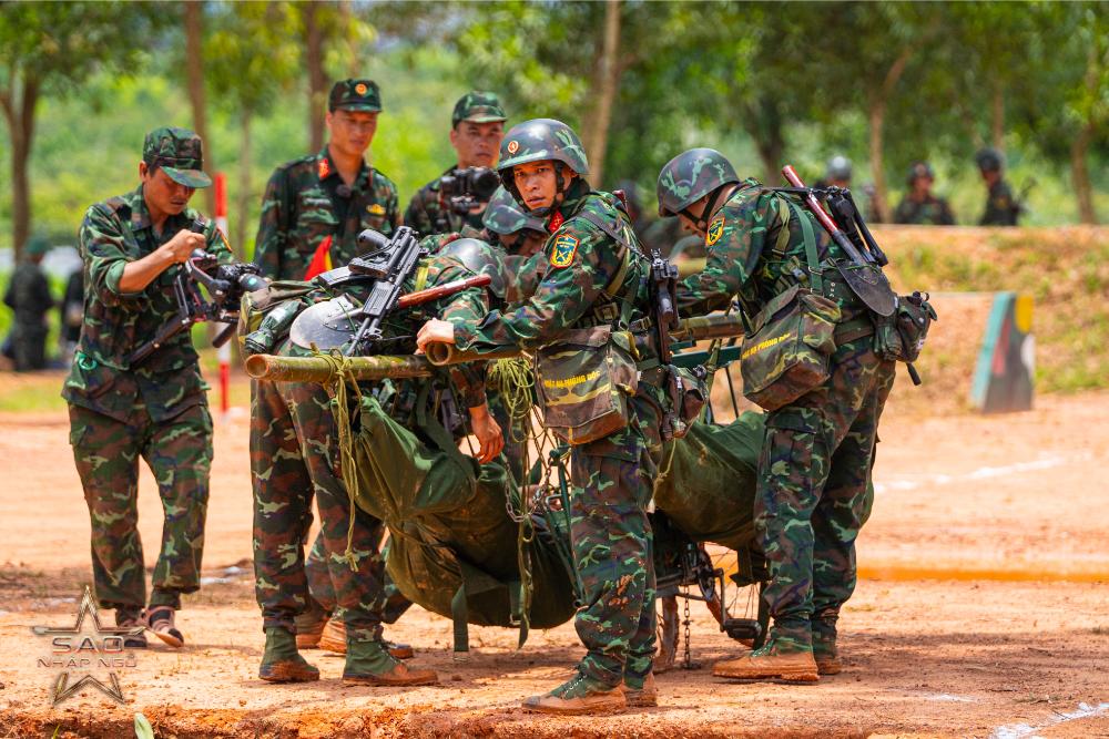 Sau giờ hội thao căng thẳng, các chiến sĩ tiếp tục bước vào nội dung huấn luyện quân y, phần học quan trọng nhằm trang bị kỹ năng sơ cứu, băng bó và chuyển thương. Dưới sự hướng dẫn của các đồng chí quân y, mọi người vừa học lý thuyết vừa thực hành với ba kỹ thuật cơ bản: băng vòng xoắn, băng số 8 và băng múi bưởi. Không chỉ mang tính huấn luyện chuyên môn, buổi học còn là dịp để các chiến sĩ rèn sự bình tĩnh, tỉ mỉ và tinh thần đồng đội trong tình huống khẩn cấp.