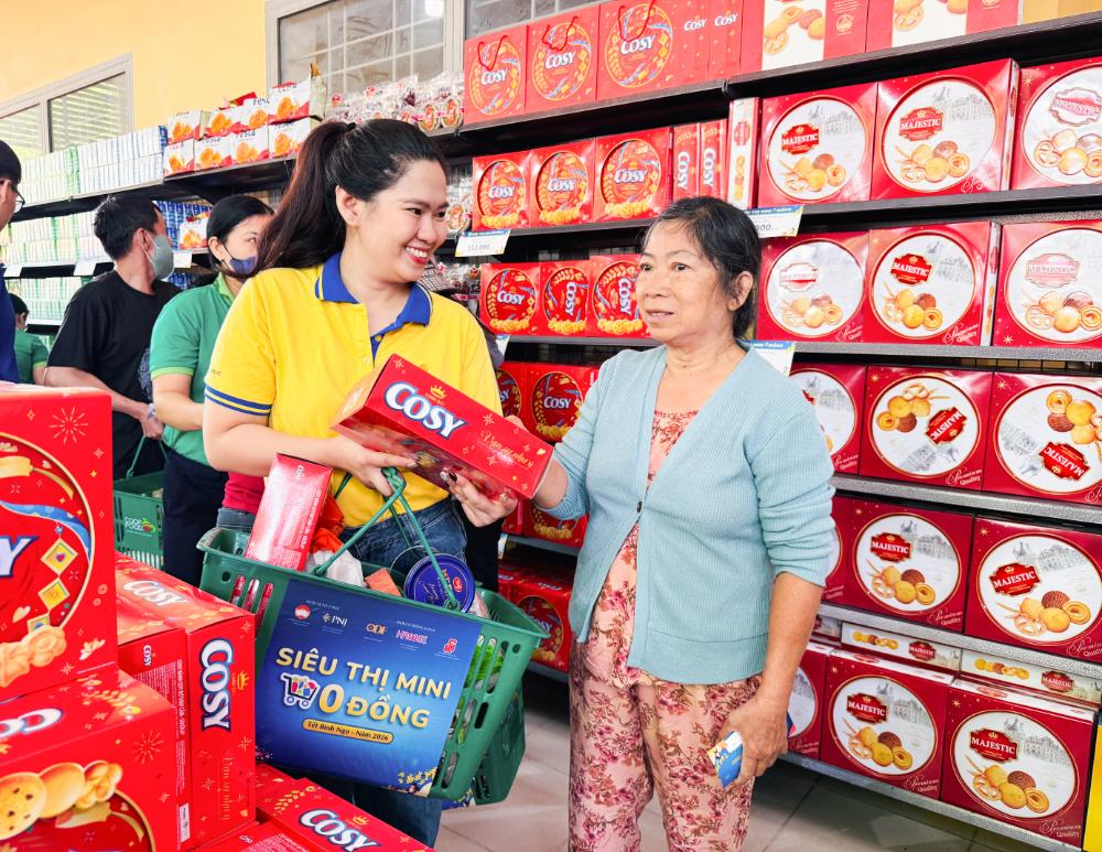 Siêu thị Mini 0 đồng 2026 đã giúp cho 15.000 bà con khó khăn có được cái tết đủ đầy hơn. Ảnh: Tấn Kiệt