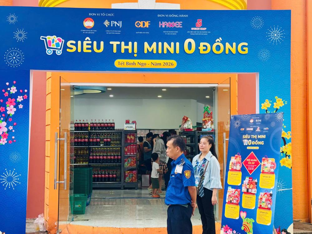 Siêu thị Mini 0 đồng là hoạt động trọng điểm của TP.HCM trong việc chăm lo cho người dân mỗi khi tết đến xuân về. Ảnh: Tấn Kiệt