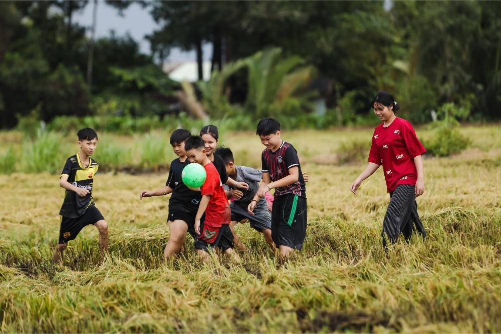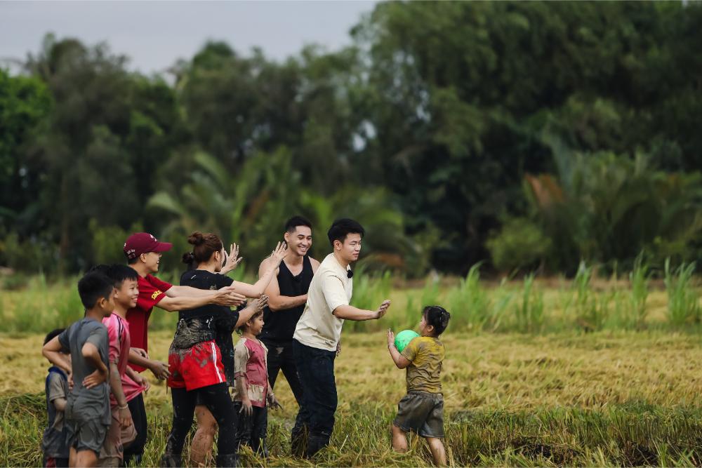 Bên cạnh đó, trò chơi cướp bóng cùng các em nhỏ giữa đồng cũng để lại nhiều khoảnh khắc thú vị. Cuộc vui vẫn chưa dừng lại khi “trò chơi con mực” lần đầu được xuất hiện tại Hàng Xóm Mới với không khí căng thẳng nhưng lại “cười ra nước mắt” bởi sự nhạy bén, duyên dáng từ vị trí của Khuyến Dương.